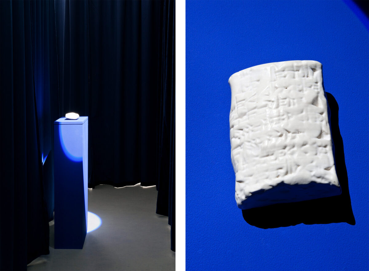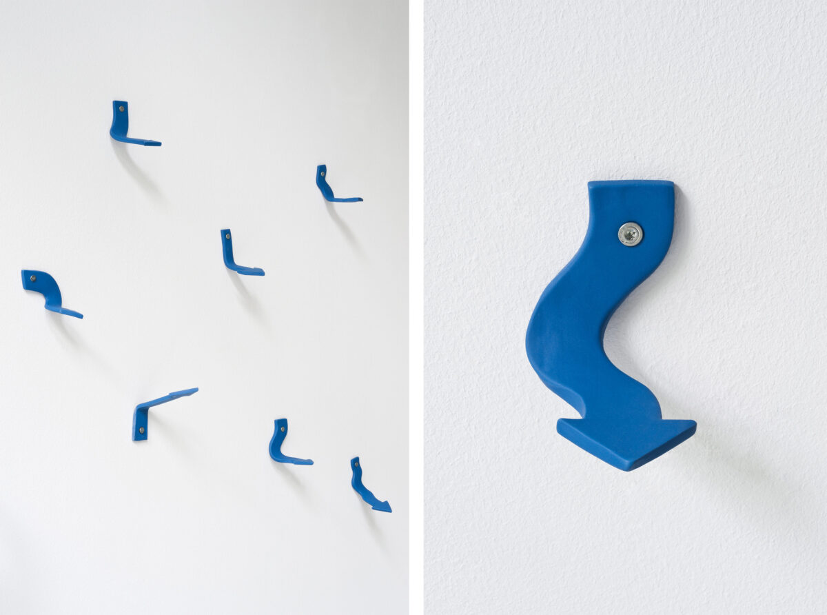 'Arrow Hangers', blue porcelain, 2025, detail, Neun Kelche, Berlin, photo Dorothea Dittrich