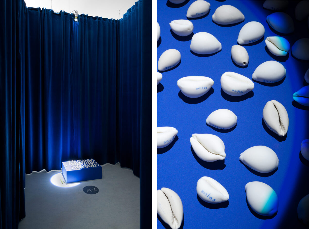 'Cowry Shells', porcelain, 'Dilemma', 2025, detail, Neun Kelche, Berlin, photo Dorothea Dittrich
